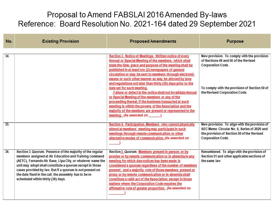 ATTENTION: ALL REGULAR MEMBERS OF FABSLAI PROPOSED AMENDMENTS FOR FABSLAI 2016 ARTICLES OF INCORPORATION AND BY-LAWS